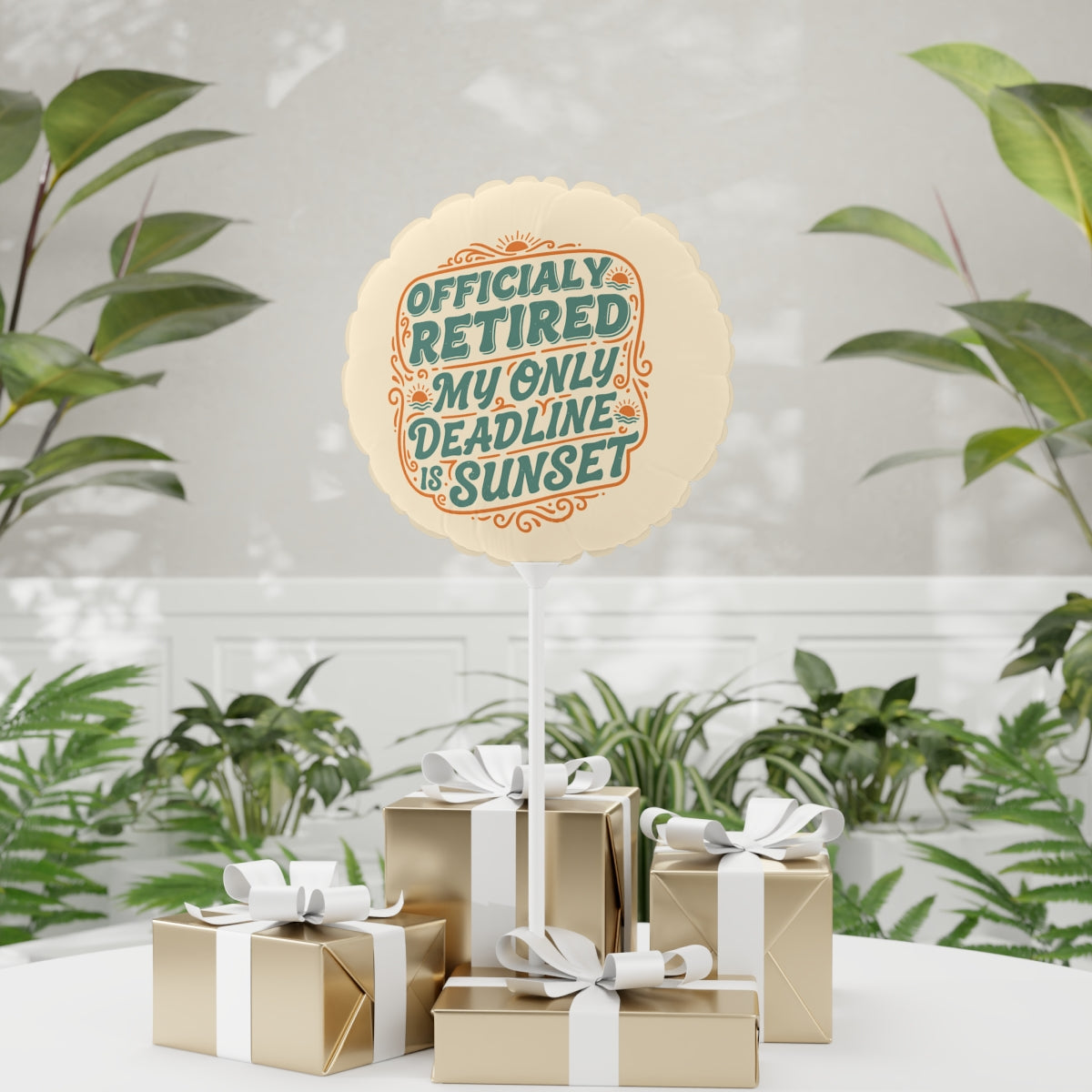 Officially Retired My Only Deadline Is Sunset! | Retirement Celebration. | Celebrate retirement with a touch of humor and relaxation! This personalized mylar ballon is the perfect gift for someone stepping into their golden years. Imagine this beautiful balloon floating gracefully at a retirement party, setting a festive and celebratory mood.